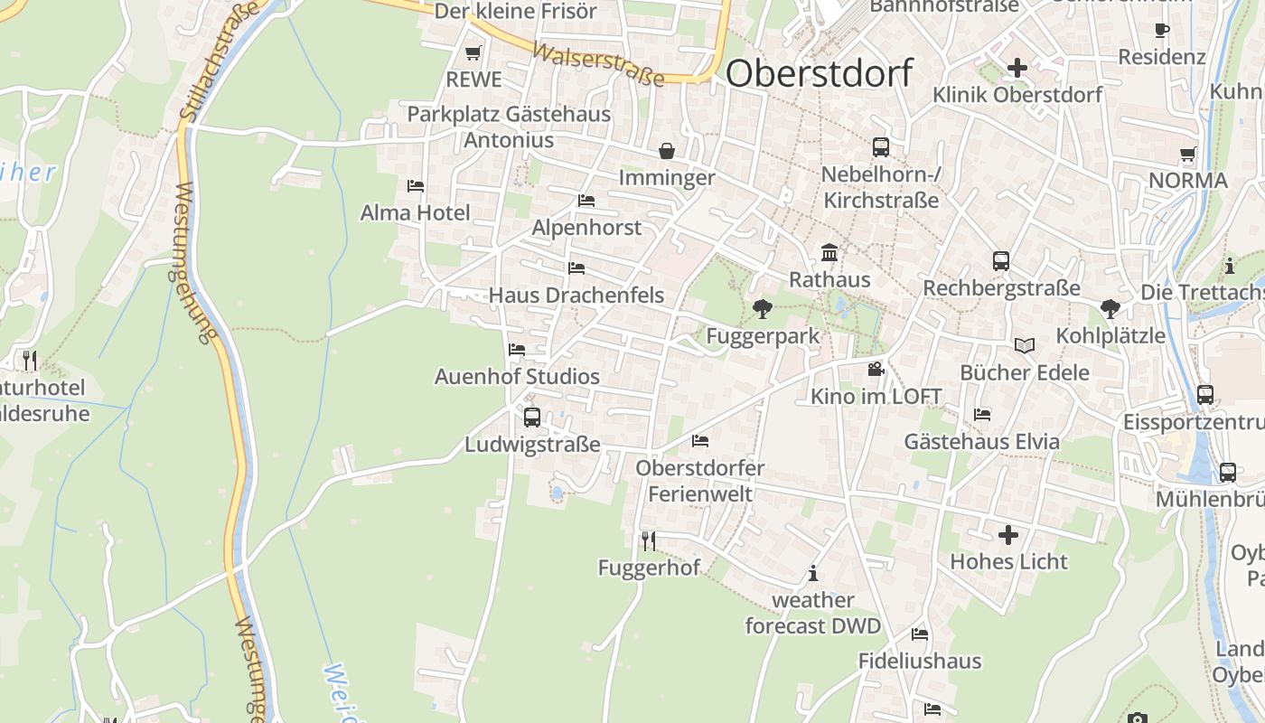 Söllereckbahn lässt sich in etwa 25 Gehminuten vom Hotel aus erreichen. Ein 5-minütiger Spaziergang von der Unterkunft aus führt Sie in die Innenstadt von Oberstdorf. Heini-Klopfer-Skiflugschanze ist in 10 Fahrminuten Entfernung von der Unterkunft. Die Bushaltestelle Oberstdorf Walserstrasse liegt in 5 Fußminuten Entfernung.